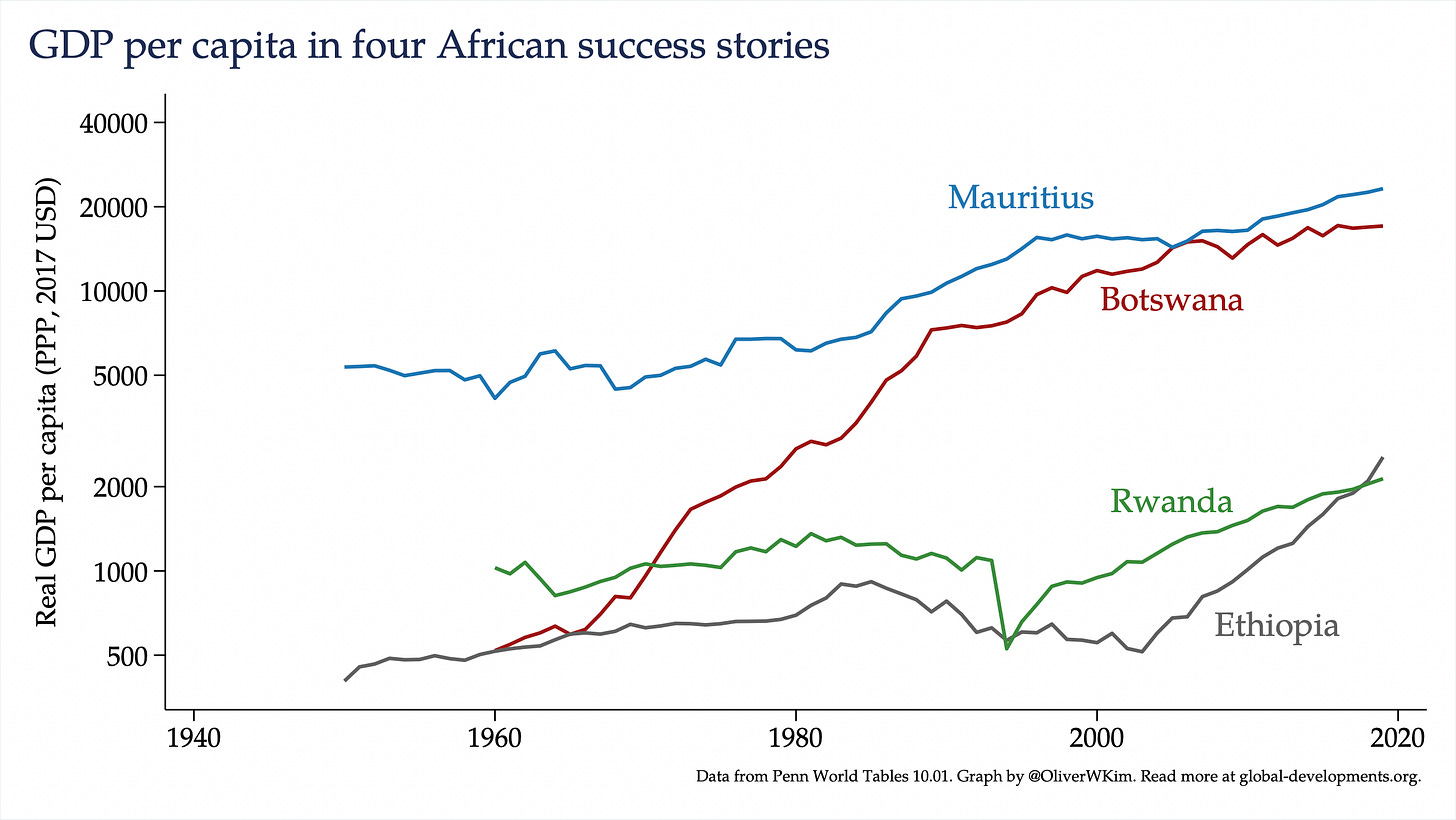 Having set the scene, Studwell turns to four successful case studies: Botswana, Mauritius, Ethiopia, and Rwanda. This itself is a refreshing approach to economic analysis of Africa, which so often wants to dwell on failure. Unlike Taiwan or South Korea, none of these countries is an unqualified developmental miracle, but their relative success provides clues to how an African economic transformation might take place.